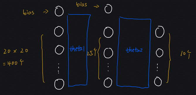 - 隐藏层(25):隐藏层 25 个节点,同样还有一个偏置单元没算在内