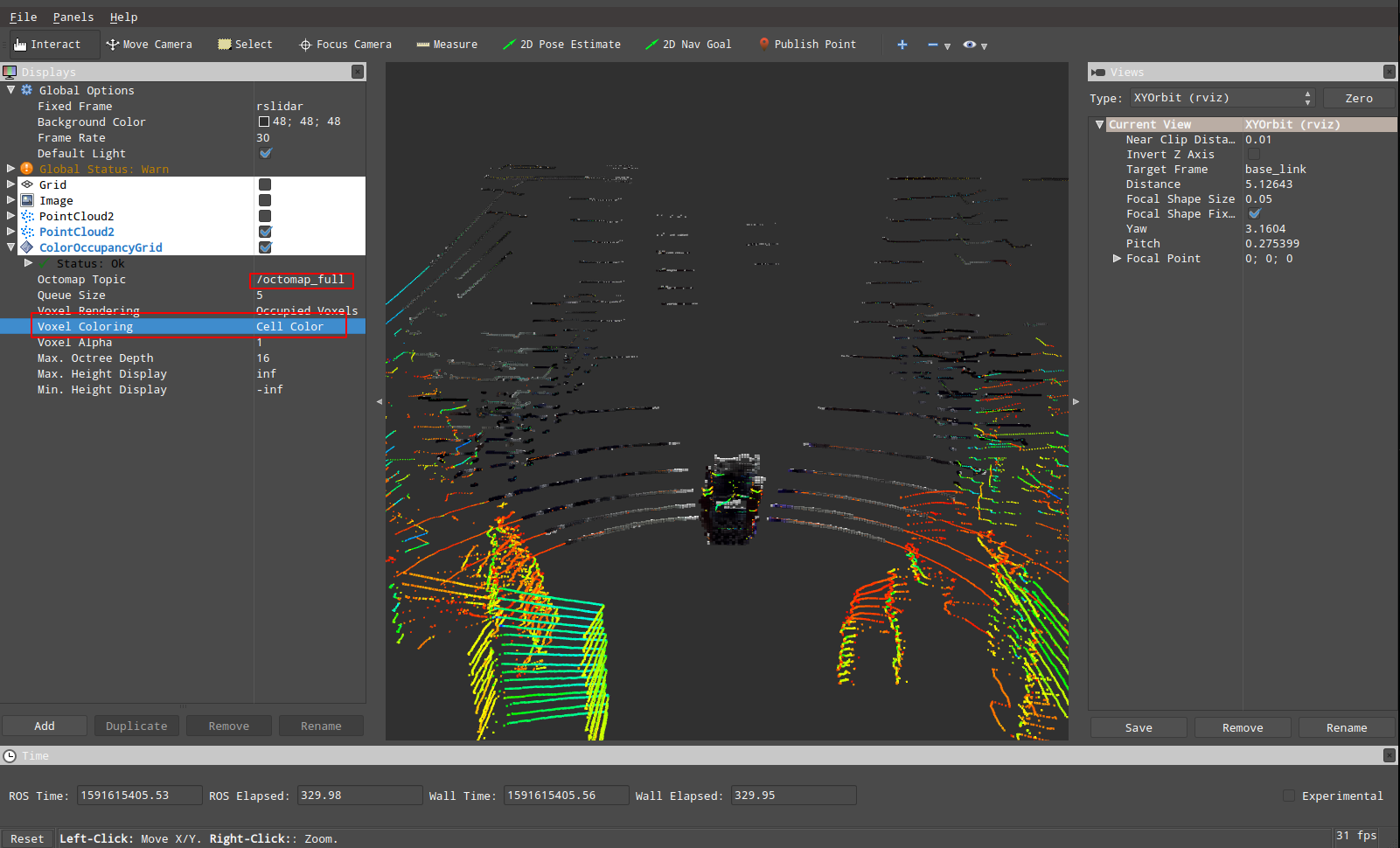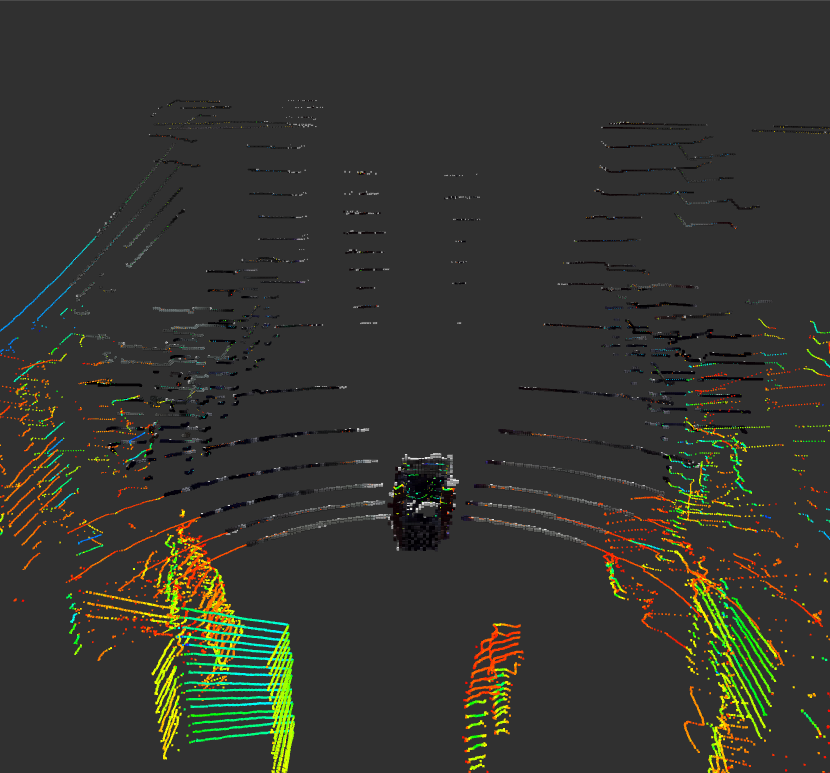 我把点云和体素栅格一起显示了,所以会重叠。这里要注意的是,如果你的点云显示不出来,要检查下「Global Options」的「Fixed Frame」有没有设置正确,我是设置的是 Robosense 雷达的 frame_id:「rslidar」。