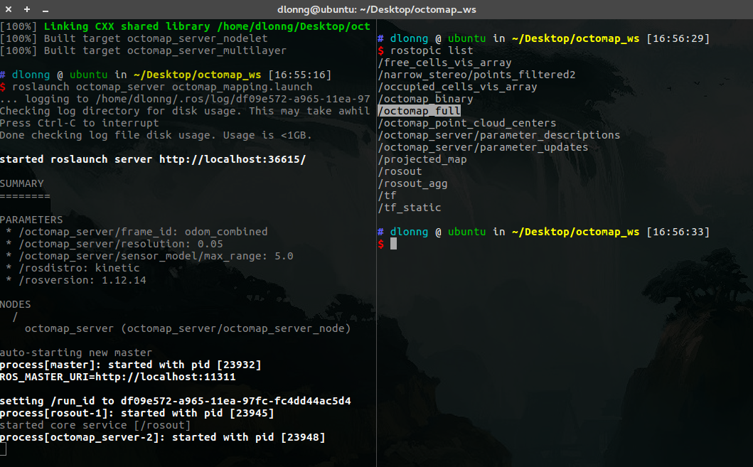 注意:上面没有安装 ros-kinetic-octomap-server,原因是我要使用这个包来建图,并且需要修改它,所以在下一步我直接通过编译源码来安装它!