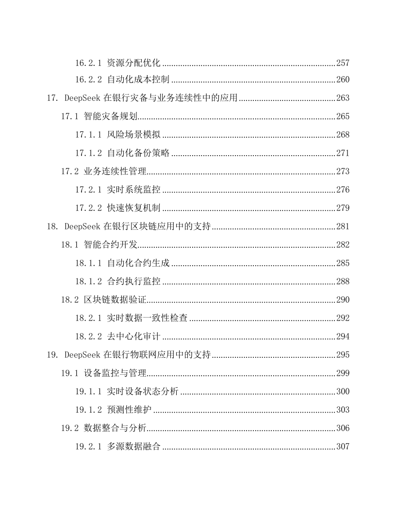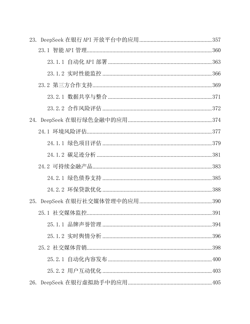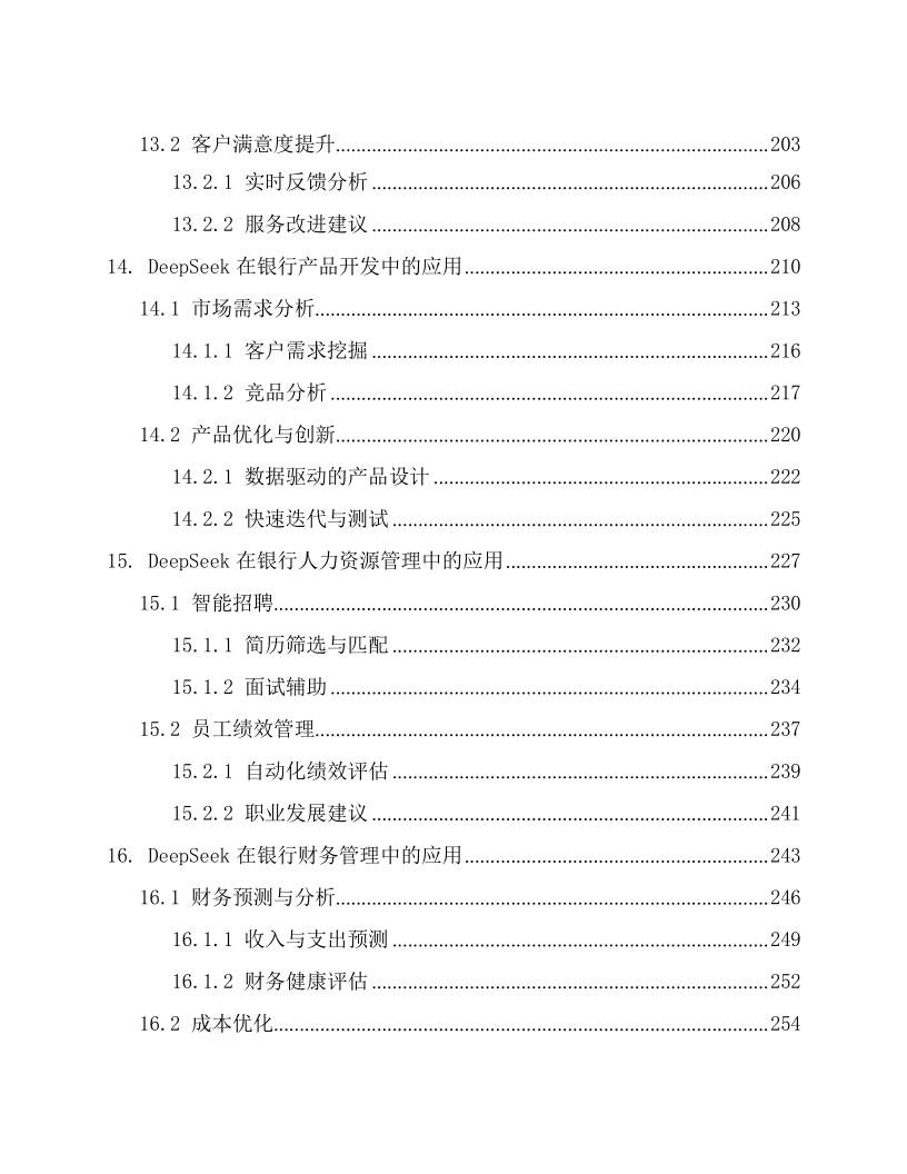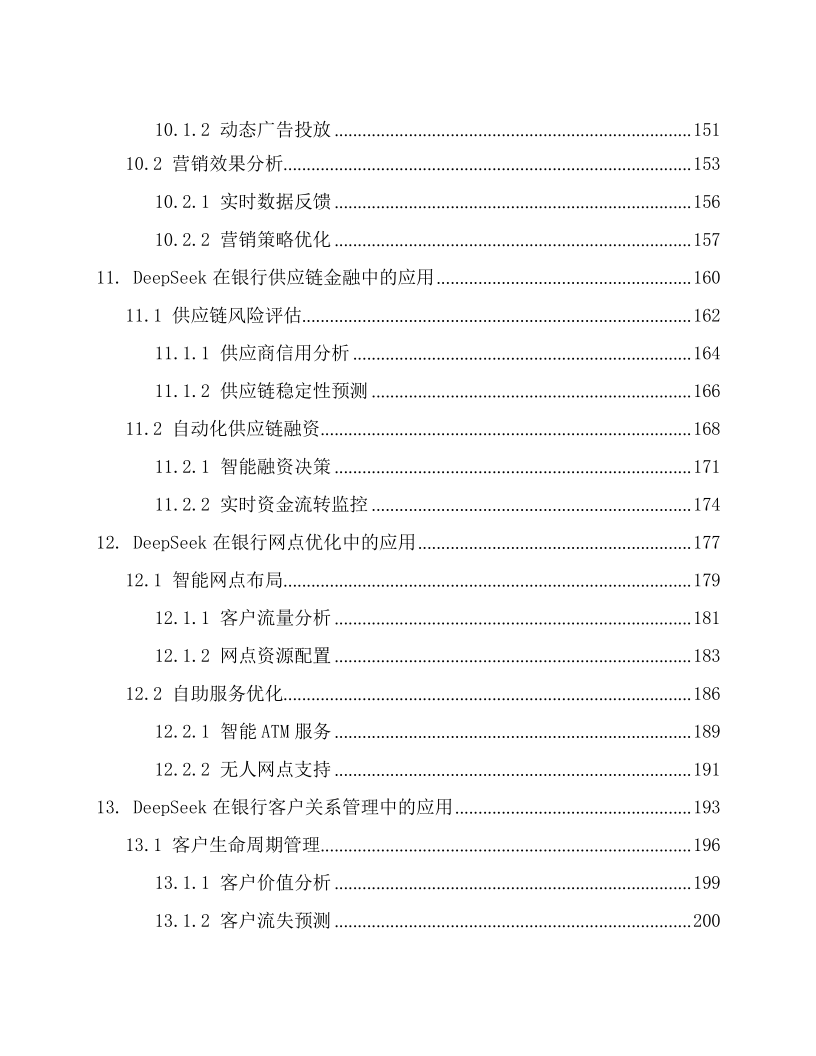 本文档为《DeepSeek 在银行的应用方案》,适配银行各业务部门(零售银行部、公司金融部、风险管理部等)的业务骨干与管理者、IT 部门(系统开发 / 运维岗)、合规与风控团队,以及金融科技企业(AI 金融解决方案研发团队)、银行咨询机构。核心围绕 DeepSeek AI 大模型在银行全场景的落地,以 “技术赋能 + 业务增效 + 合规保障” 为框架:先阐述技术优势(多模态处理、实时决策等)与银行业数字化转型需求;再覆盖 29 大核心场景,含客户服务(智能客服、个性化推荐)、风险管理(信用评估、反欺诈)、贷款审批(自动化流程、违约预测)、投资理财(智能投顾、市场预测),及内部运营、支付结算、数据安全等;还强调合规性(适配 GDPR、巴塞尔协议等)与技术支撑(隐私计算、区块链存证),结合实操案例与性能数据(如智能客服响应时间 < 1 秒、反欺诈准确率 98.7%),为银行构建智能化、安全化、高效化的业务体系提供全流程解决方案。