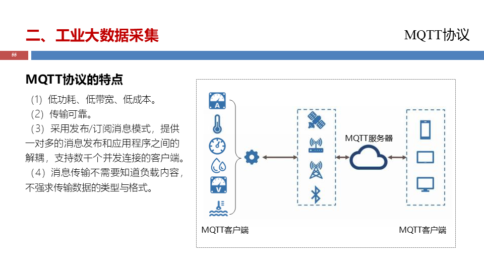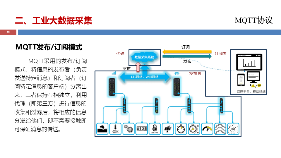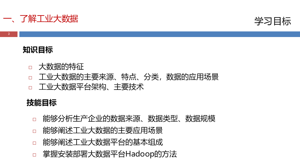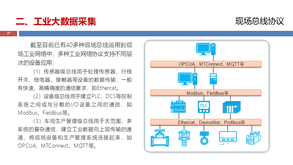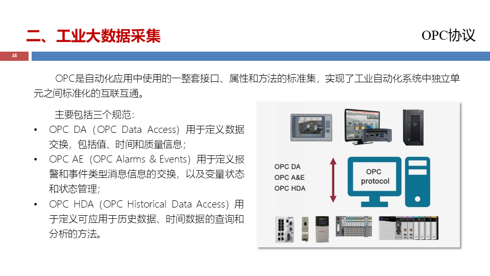 5. 工业大数据采集:包括认识工业现场网络、掌握工业数据采集系统的部署方法、阐述工业数据的采集方式、完成PLC和PTL数据的采集与存储等。