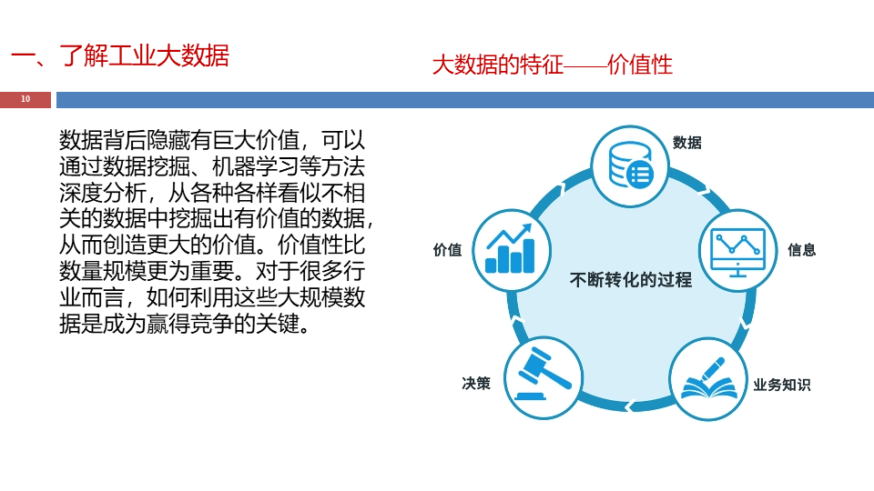 1. 工业大数据的特征:除了大数据的4V特征外,还具有时序性、实时性等特征。