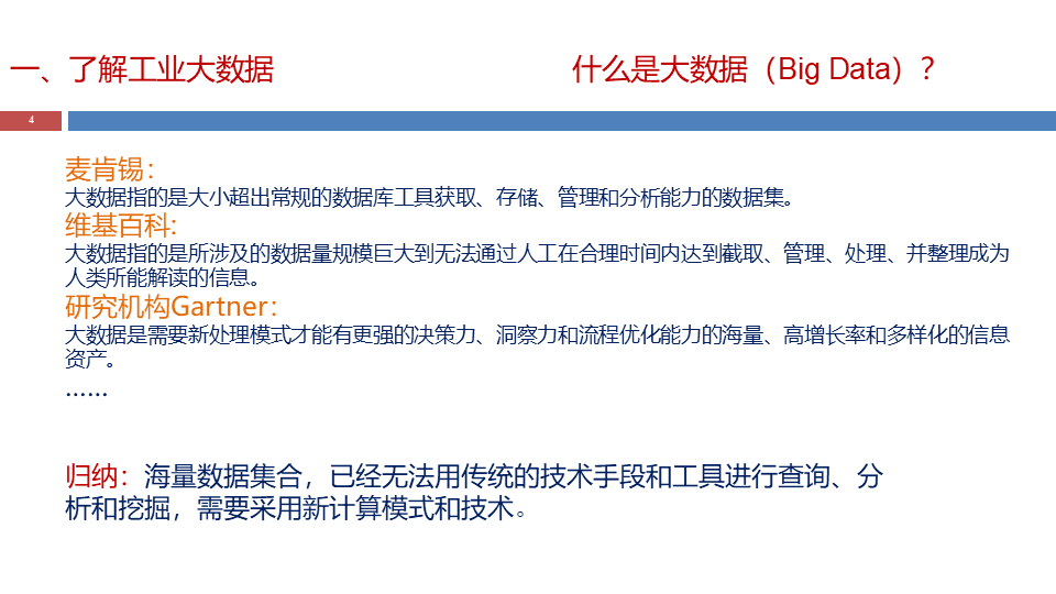 2. 工业大数据的来源:包括企业内部信息化数据、工业互联网数据、外部数据等。