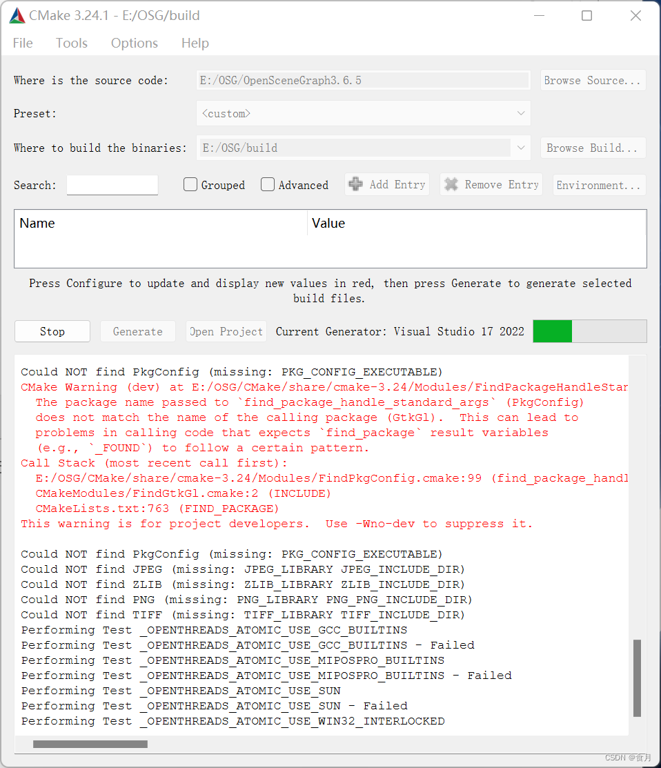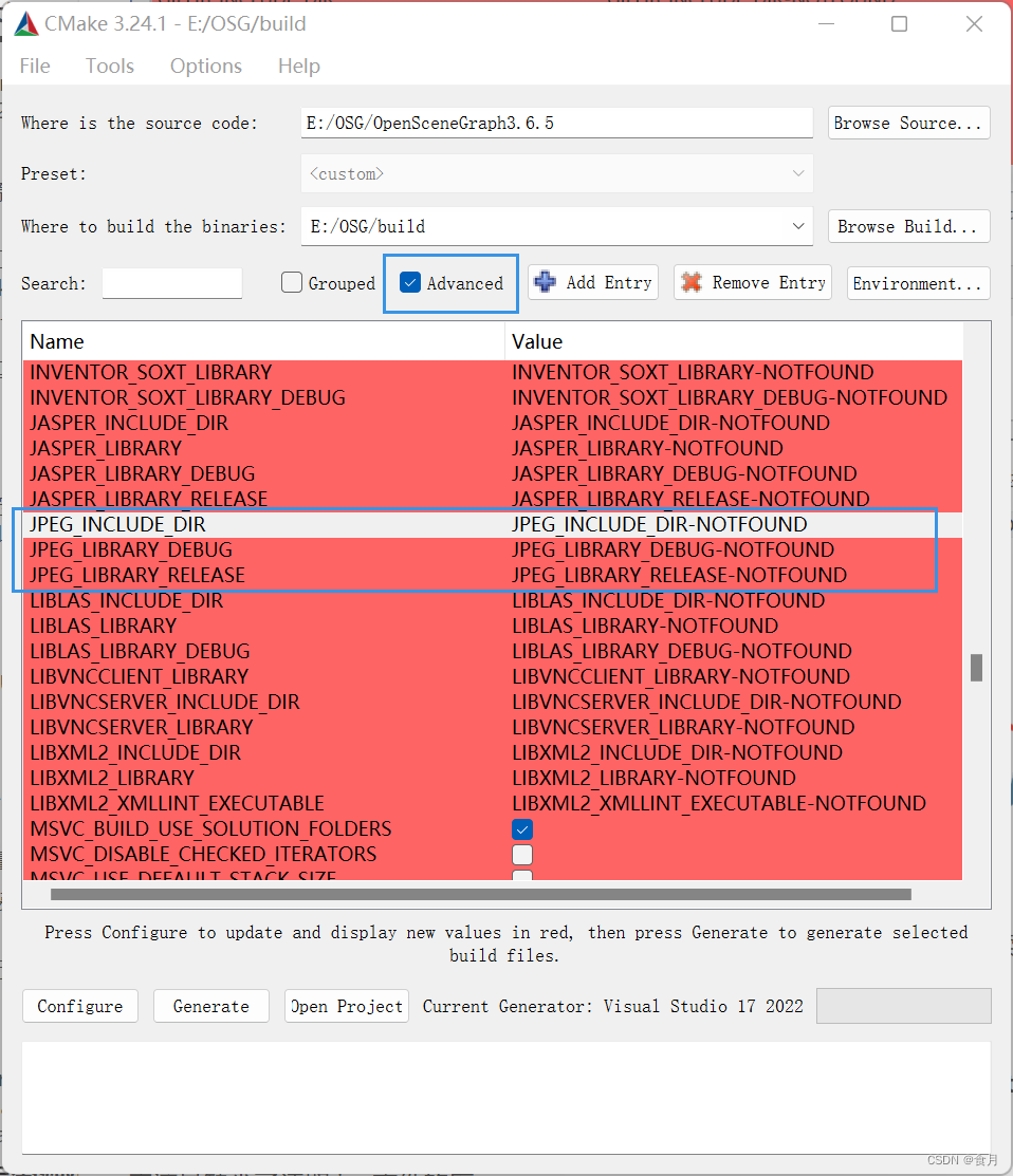 Configure-->Generate,然后再打开 .sln 解决方案,生成-->批生成,先ALL_BULID,然后再INSTALL,再重新运行