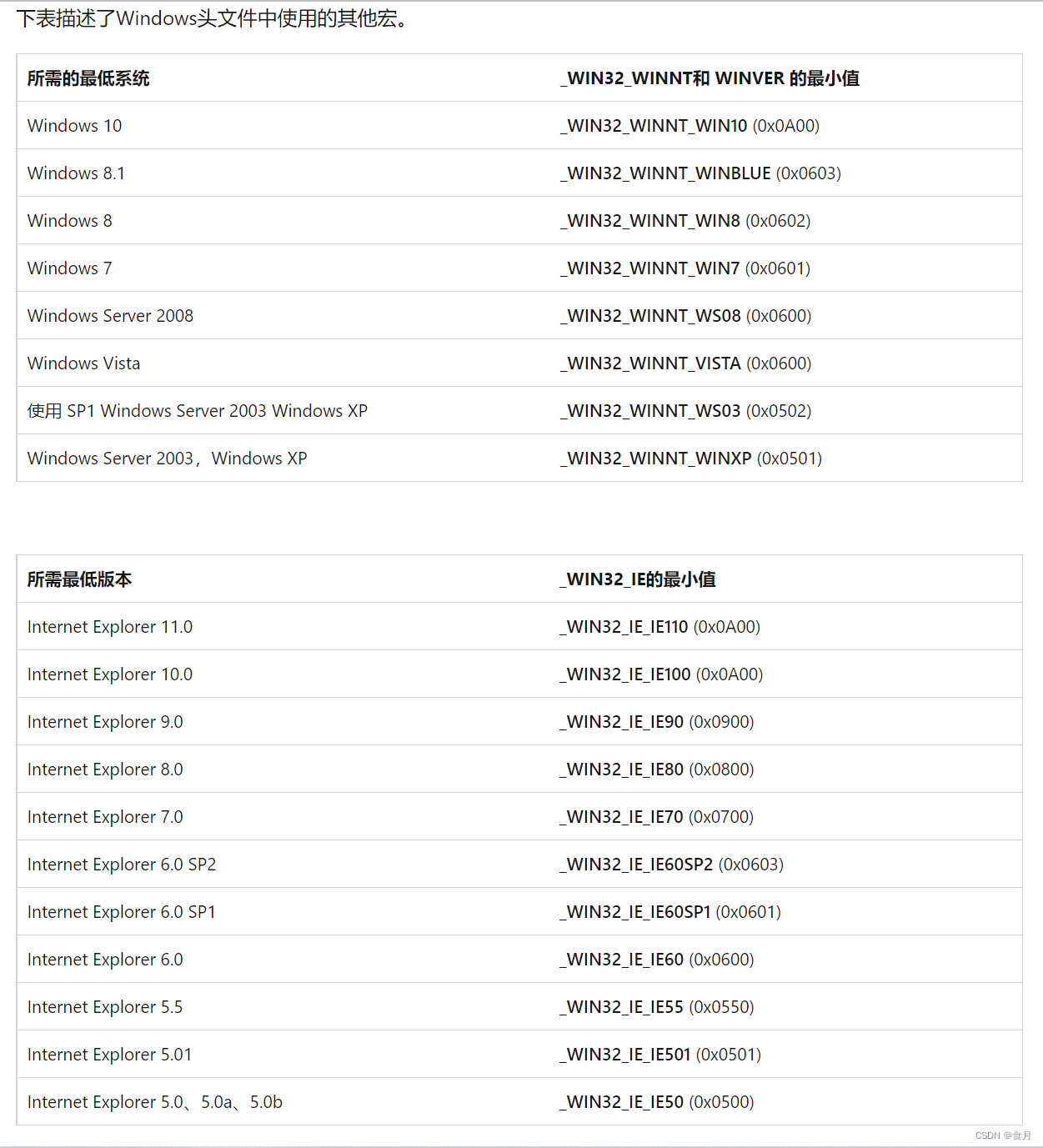 其中的_WIN32_WINNT=0x0A00,表明目标平台是Win10的,对应关系如下所示: