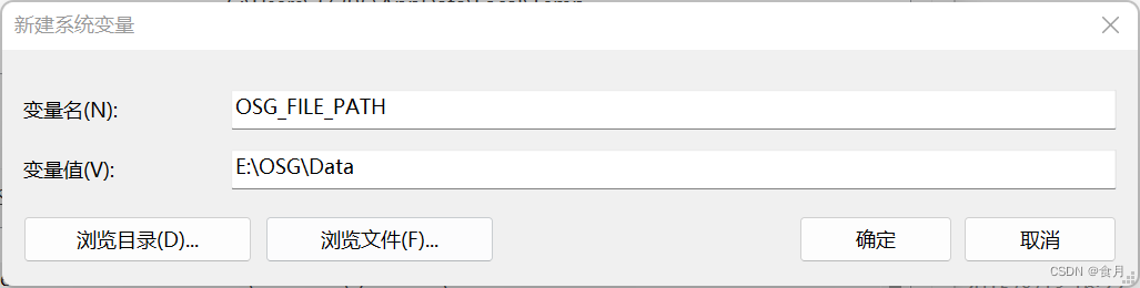 添加系统环境变量OSG_FILE_PATH,值为前面的Data的目录(E:\OSG\Data)