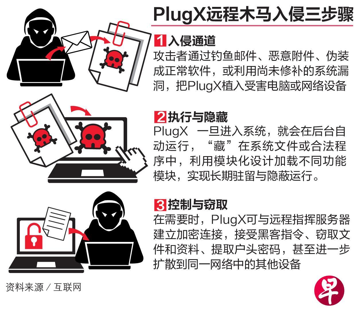 PlugX的基本运作与大多数远程木马类似,先通过钓鱼或漏洞取得初始访问并执行载荷长期驻留,随后在需要时与远端服务器连线,窃取资料、提升权限并横向扩散。