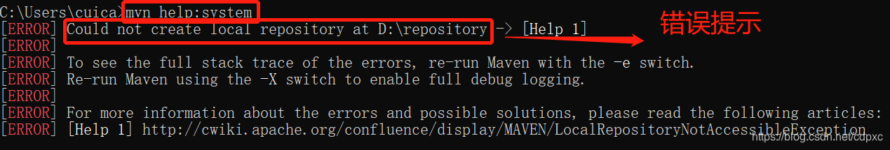 2、 Could not create local repository at D:\repository,不能创建本地仓库