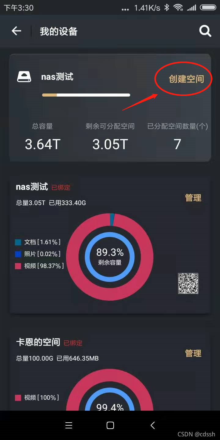 创建好之后,可以点击那个空间的二维码,发送给你想分配的人,对方使用APP扫描这个空间二维码就可以绑定使用这个空间了。