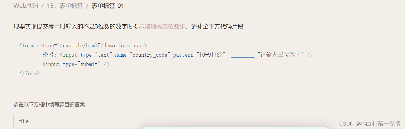 input元素使用title属性可以在输入内容不符合该正则时,给出提示语判断输入是否正确的提示语句只在表单提交时显示
