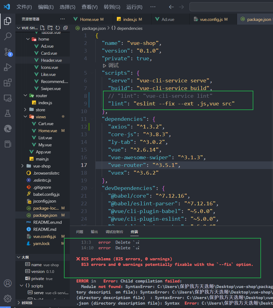 终端运行npm run lint修复不符合的代码
