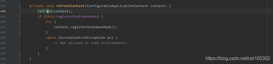 4.refreshContext(context)这里是整个容器真正初始化的入口,我们先跟踪进入