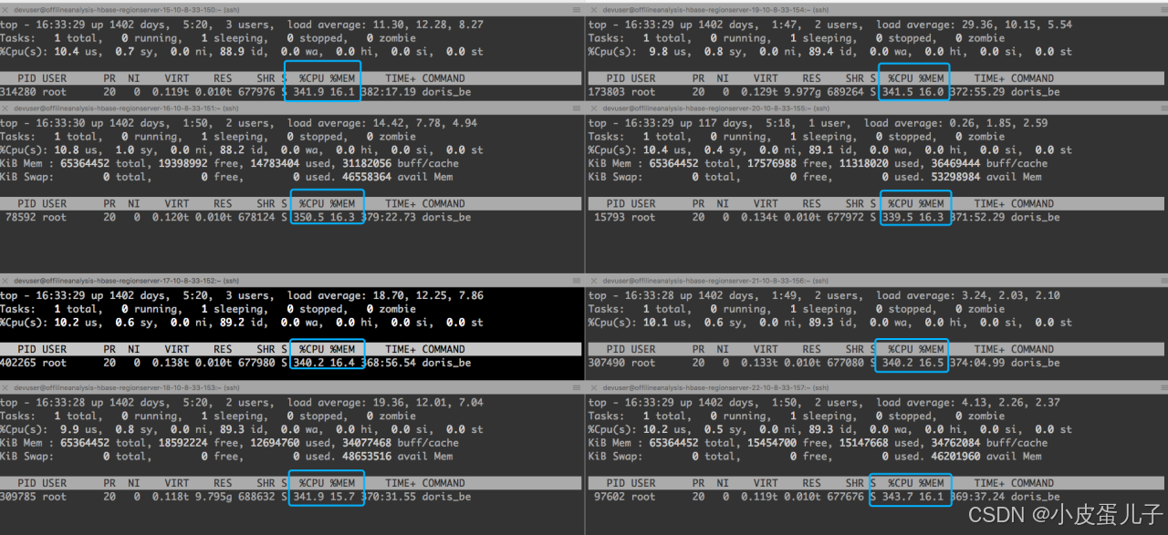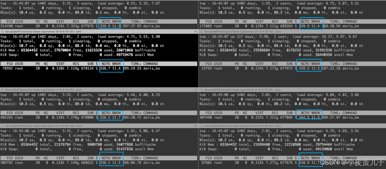 目前是 8台 /32cpu 32*8=256 core /64G mem 64G*8=512G mem