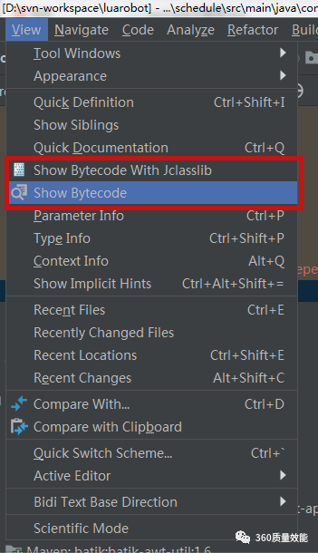 安装完jclasslib Bytecode viewer,会在view菜单中出现如下两个选项