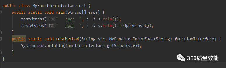 public static void testMethod(String str, MyFunctionInterface<String> functionInterface) {