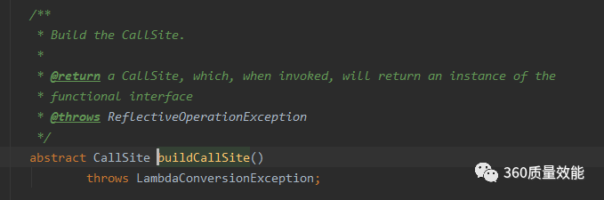 里面通过InnerClassLambdaMetafactory生成了CallSite的子类ConstantCallSite,当通过指令调用CallSite会返回函数式接口的实例,而生成接口实例的方式是通过内部类的方式,由于方法比较深,就不继续贴代码了。