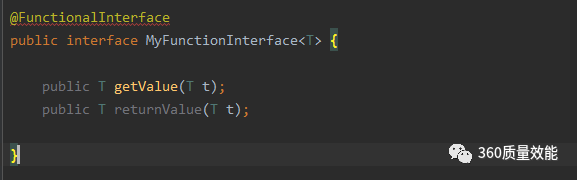 我们可以在接口上使用@FunctionalInterface注解,如果使用Intellij IDEA可以在编码的时候就看见报错了,这样做可以检查它是否是一个函数式接口。