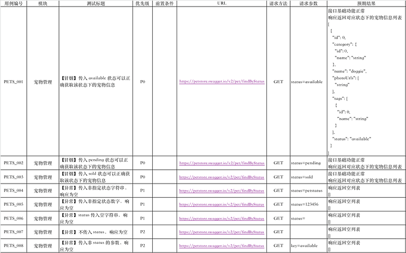 - 宠物查询单接口用例: