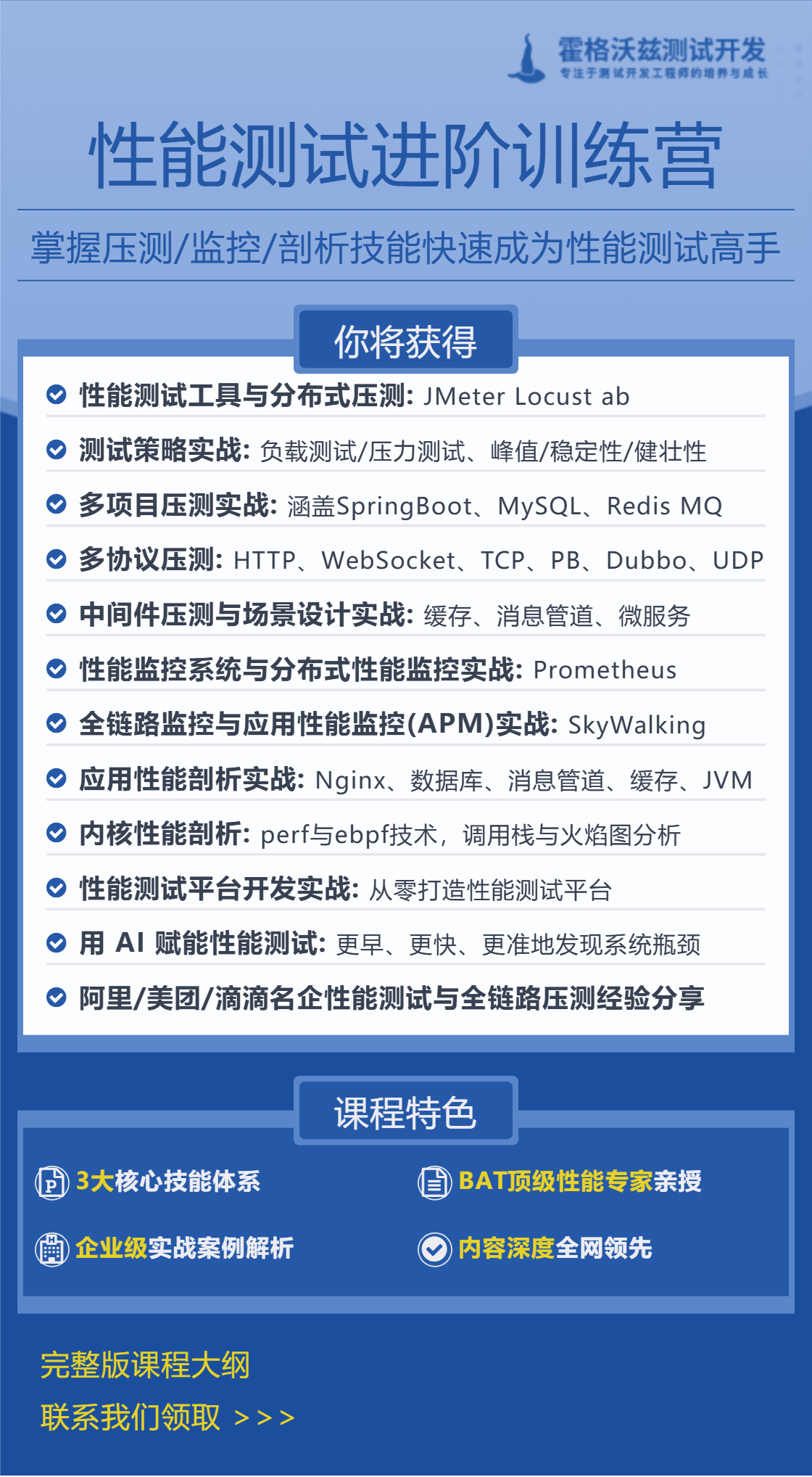 面试不慌,能力有保障,同时可系统提升个人性能测试实战能力。