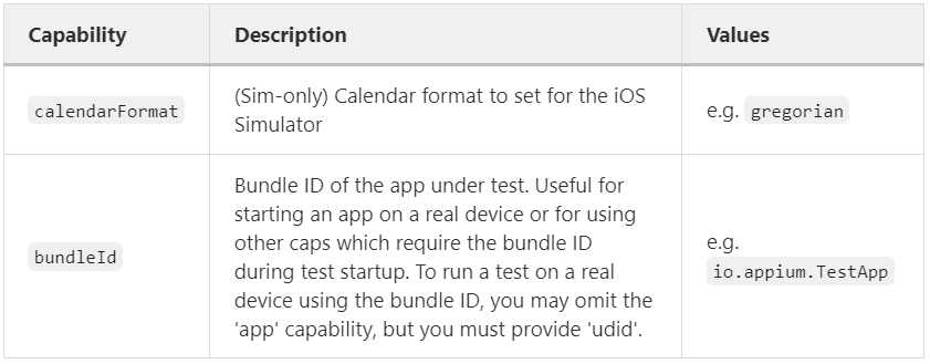 下面这些 Capabilities 仅支持 iOS 驱动,比如 XCUITest Driver 和 deprecated UIAutomation Driver。