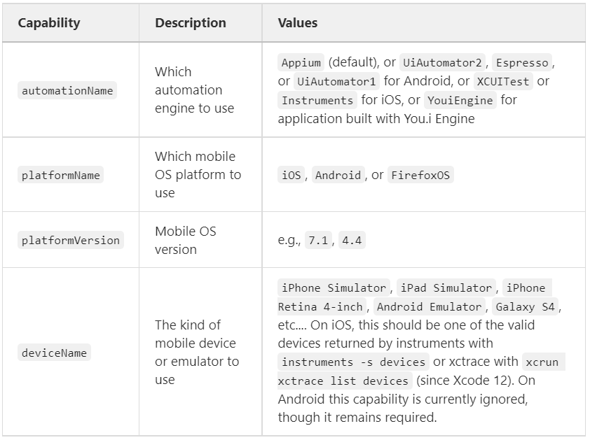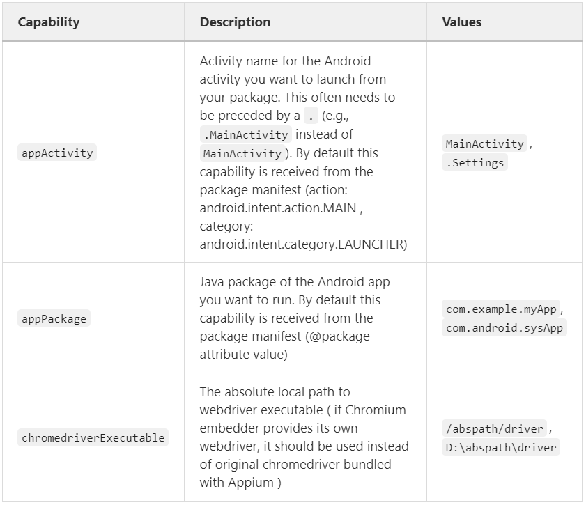 下面这些 Capabilities 仅支持 Android 驱动,比如 UiAutomator2。