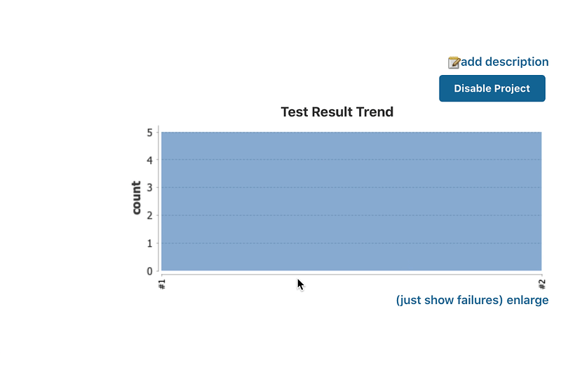 - 多次运行后,在 job 的首页上就会出现 case 执行的趋势图,注意要展示趋势图的话,至少要有一次单元测试运行全通过才行