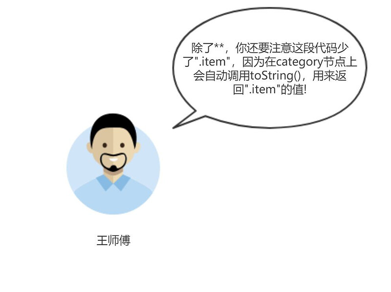 这确实达到了我的要求,但代码明显有很多bug,如果我更改了category的位置,像下面这样,你的代码就不 适用了,我不难为你了,请王师傅来解答吧: