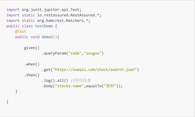 现在,我们使用 Rest-Assured 来编写一个简单的测试程序调用相同的Get请求: