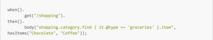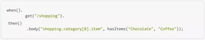答对了,请一定要记住xml和json的区别,不要混谈,那么你能编写一个测试来验证杂货(groceries)的类别是 否包含巧克力(Chocolate)和咖啡(Coffe)吗?