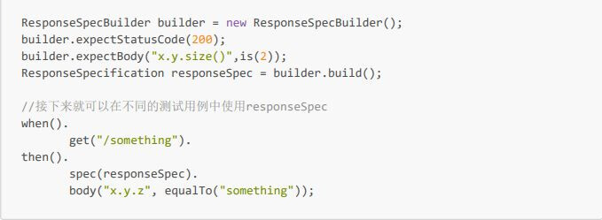 例如,你想在多个测试用例中,都使用这样的断言:判断响应状态码是否为200,并且Json数组"x.y"的大小是否 等于2。你可以定义一个ResponseSpecBuilder来实现这个功能: