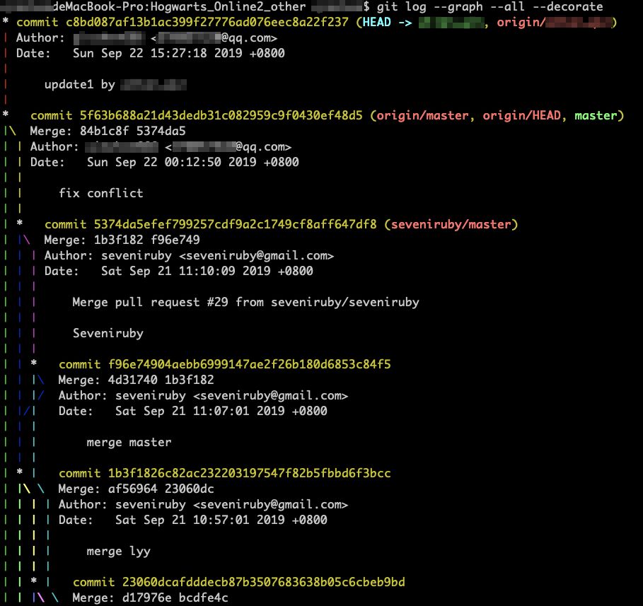 1.4) 使用git log --graph --all --decorate=short命令可以查看提交的分支走向,如果分支较多的话就会出现如下效果: