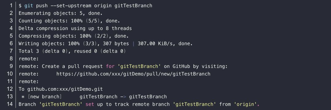 1.3) push到远程仓库并查看分支,首次push需要用git push -u 或git push --set-upstream 命令设置上下游的关联关系: