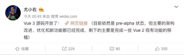 尤小右发的消息,Vue 3.0 终于就要来了,这次不再是假消息了。