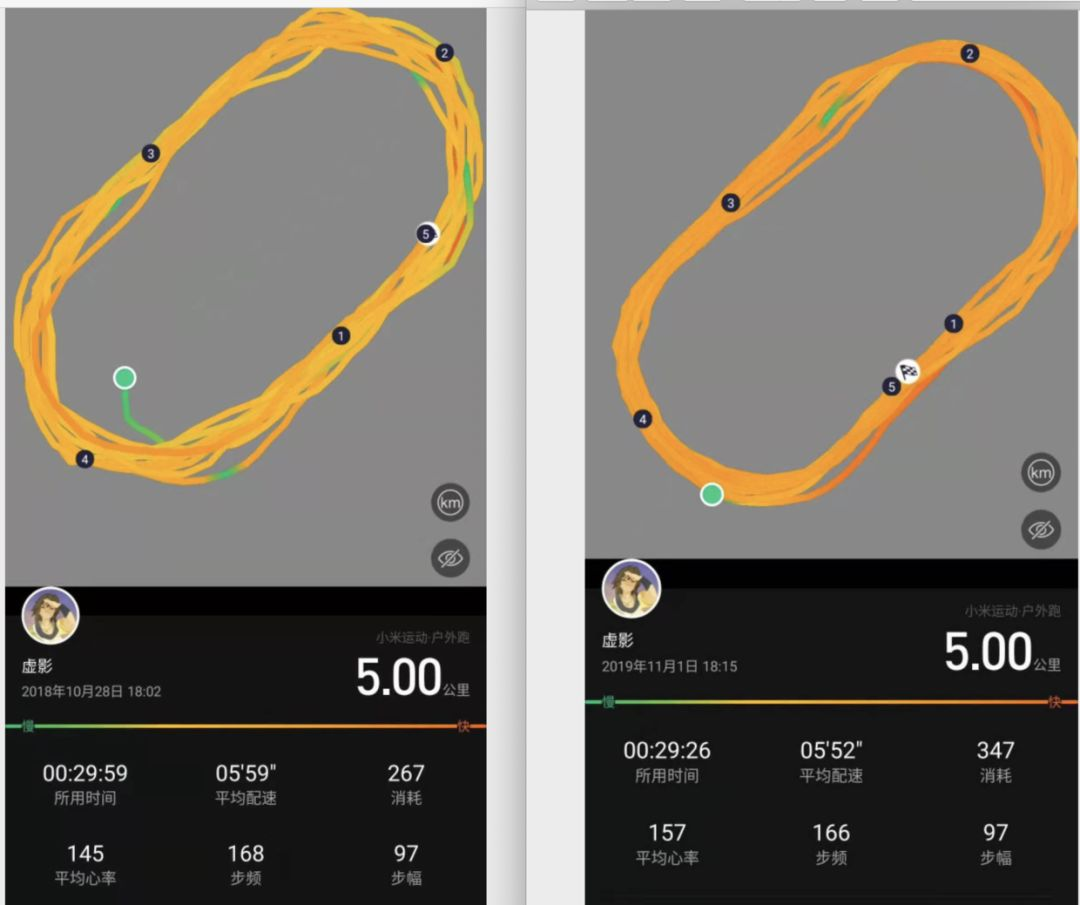 2018 年跑步最快的一次 VS 2019 年跑步最快的一次: