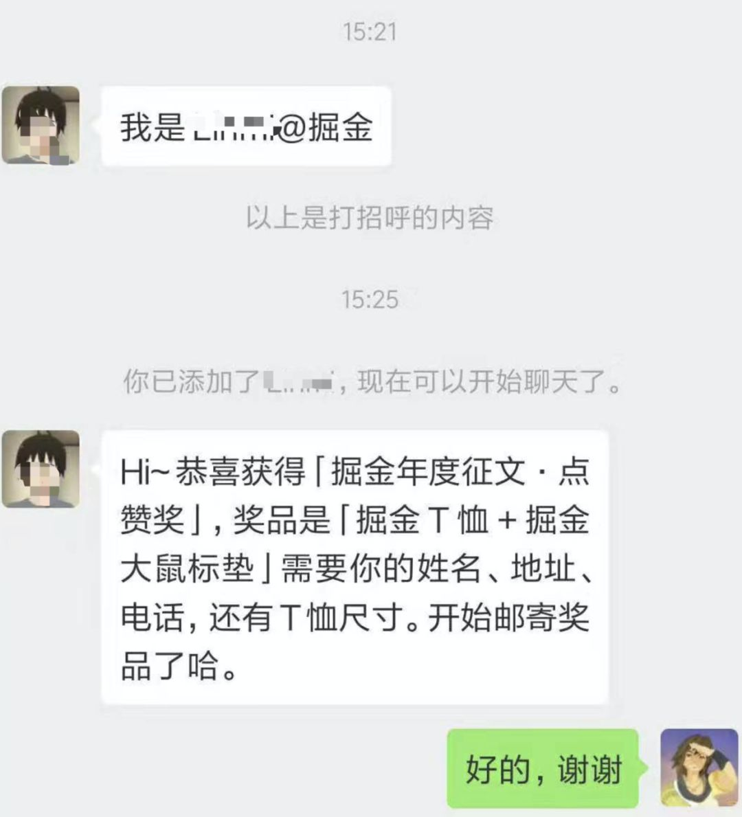 2019 刚过完年,回来上班的前一天收到了掘金的好消息,哈哈哈~