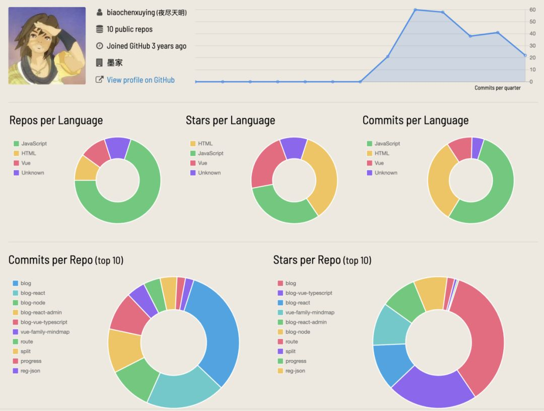 如果你想看自己的 GitHub详解报告,可以通过上面的文章中获取到报告地址,还有各种数据分析的地址哦。