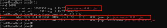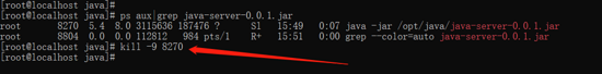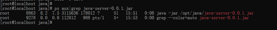 String command = "ps aux |grep java-server-0.0.1.jar |grep -v grep | awk '{print $2}'";