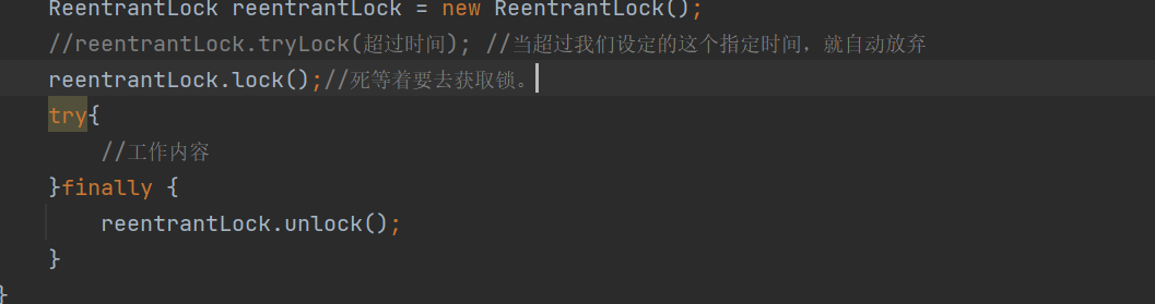 trylock(超时时间);加锁,要是没获取到就等待一段时间然后放弃