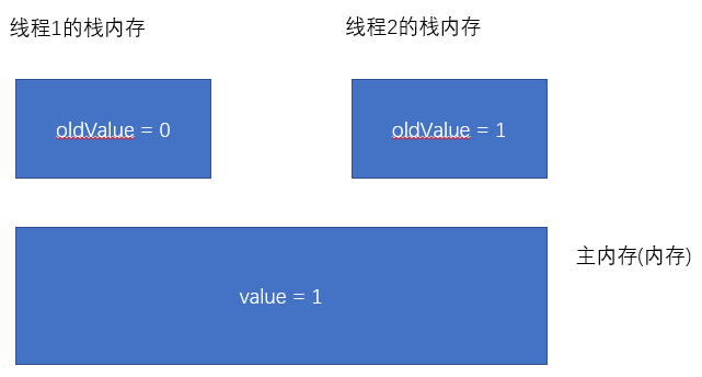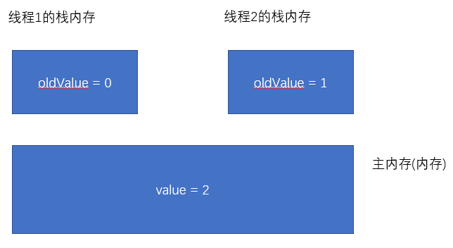 3.当线程2.value == oldvalue==1时候, value == oldvalue+1=2