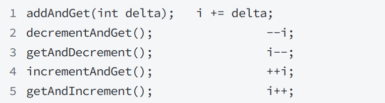 以AtomicInterger为例常见的方法有: