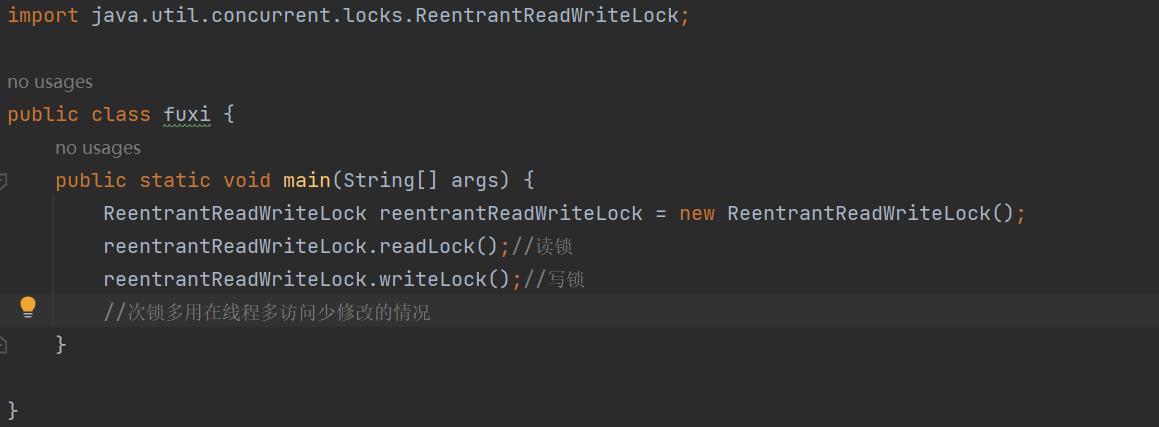 读写锁就是把读操作和写操作区分,java提供的ReentrantReadWriteLock类就实现了读写锁