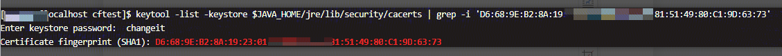 keytool -list -keystore $JAVA_HOME/jre/lib/security/cacerts.bak | grep -i '66:7C:D1:72:E3:53:FC:69:34:D5:xxxxxxxx:C1:5A:2D:3E:35:3D:45:5C:B6:41:9F:38:B0:95:B8:97'