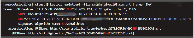 keytool -printcert -file smtphz.qiye.163.com.crt | grep 'SHA'