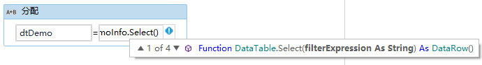 表变量名.Select的参数赋值有4种模式,这里使用的是第一种(见上图中的1 of 4),感兴趣的话,其他模式可以自己研究一下,这里不再赘述。