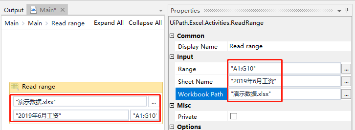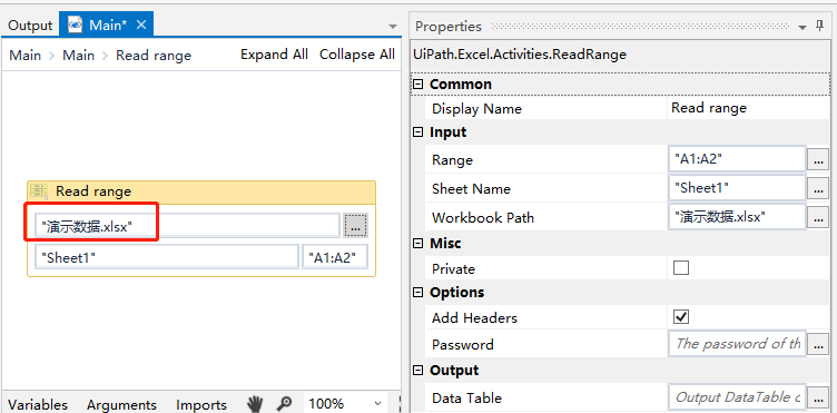 2.2.3 开始你的RPA之旅第一步:托拽个Read Range到编辑区,并设置其属性值