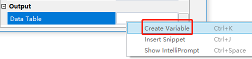 在上图右下角Data Table中鼠标右键,显示菜单,选择“Create Variable”,如下图: