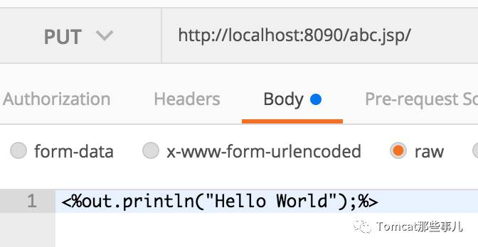 data: 使用raw格式 <%out.println("Hello World");%>