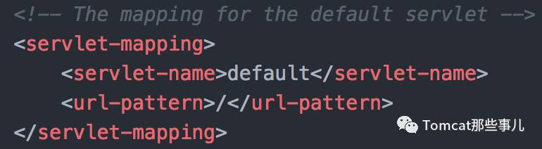 我们很久之前的文章介绍过, Tomcat 里包含了两个默认的 Servlet, 用于处理特定的请求,一个是 DefaultServlet,一个是 JspServlet。这两个 Servlet 都是在 Tomcat 默认的 web.xml 里被包含进来,与自定义的web.xml 进行 merge,所以每个应用都会有这两个 Servlet。