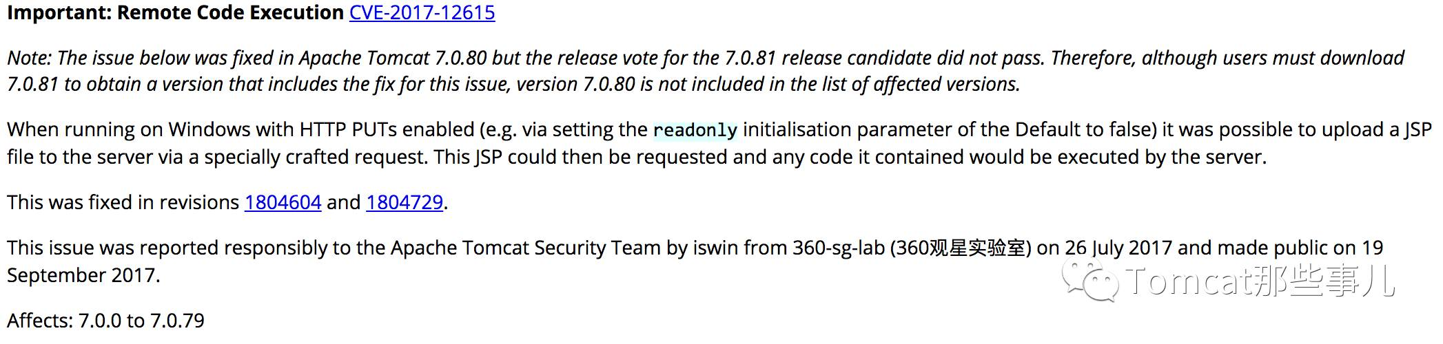 近期有朋友在后台反馈 Tomcat 的漏洞,