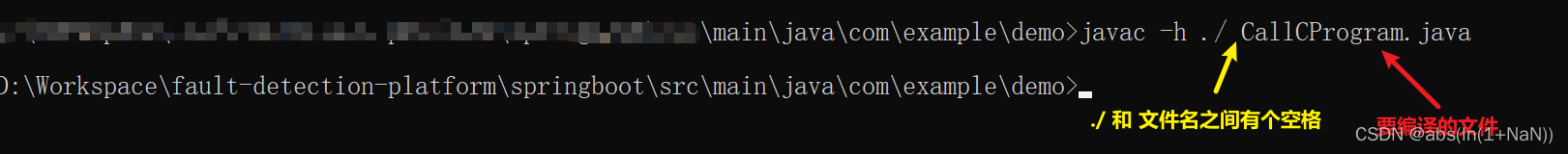 在命令行中输入 javac -h ./ CallCProgram.java ( ./ 和 CallCProgram.java之间有一个空格)